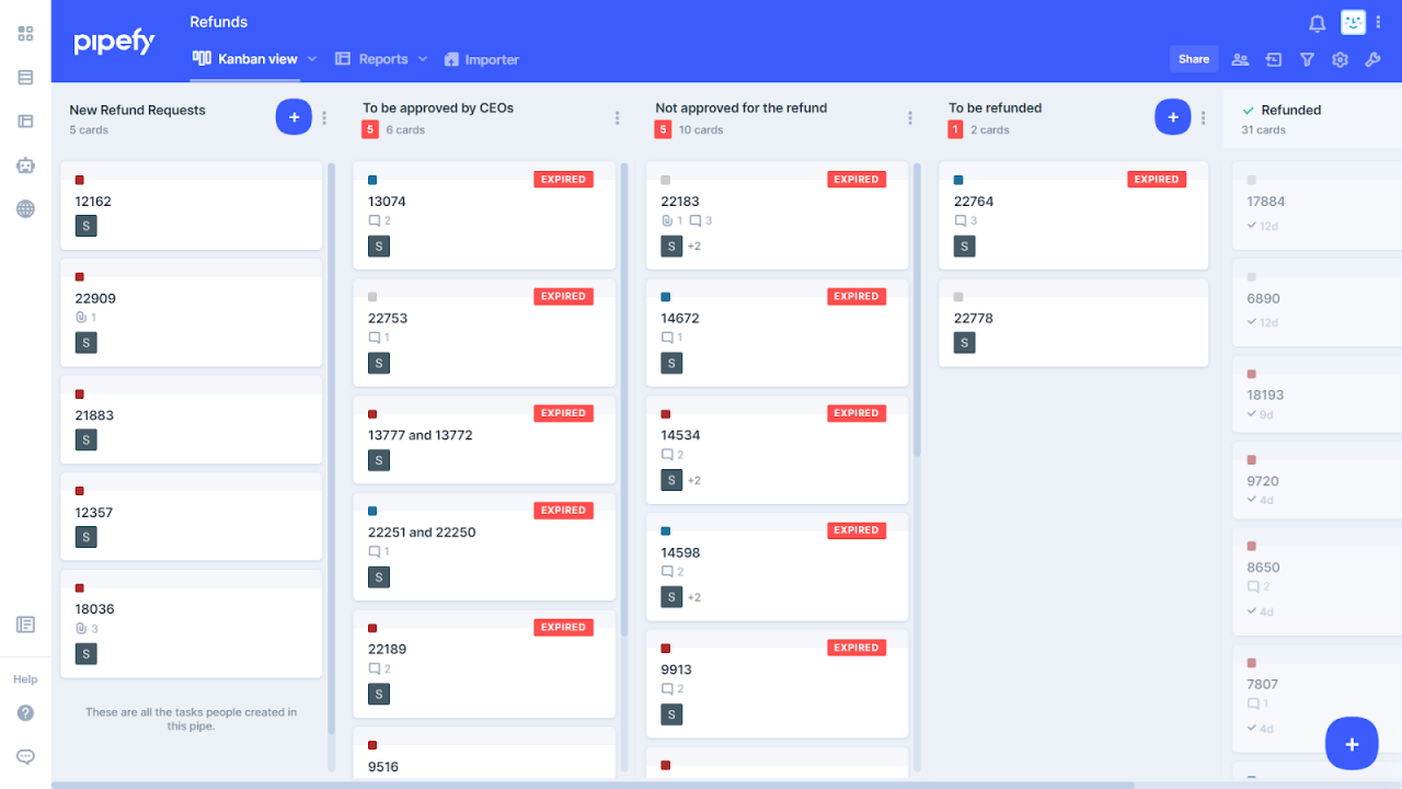 Potresti usare strumenti come Asana, Bitrix 24, così come Pipefy, dove puoi impostare il processo, delegare i compiti a ciascuno, e rimanere informato circa la conclusione di quei compiti, capendo anche se i singoli si spingono oltre la loro autorità. Che è il momento in cui devi intervenire, non prima. Dare alle persone l’indipendenza nel lavoro ti porterà più risultati rispetto al sorvegliare ogni loro passo come un cane da guardia. Avrai solo bisogno di controllare le milestone, seguire i rapporti e ricevere aggiornamenti sui progressi.